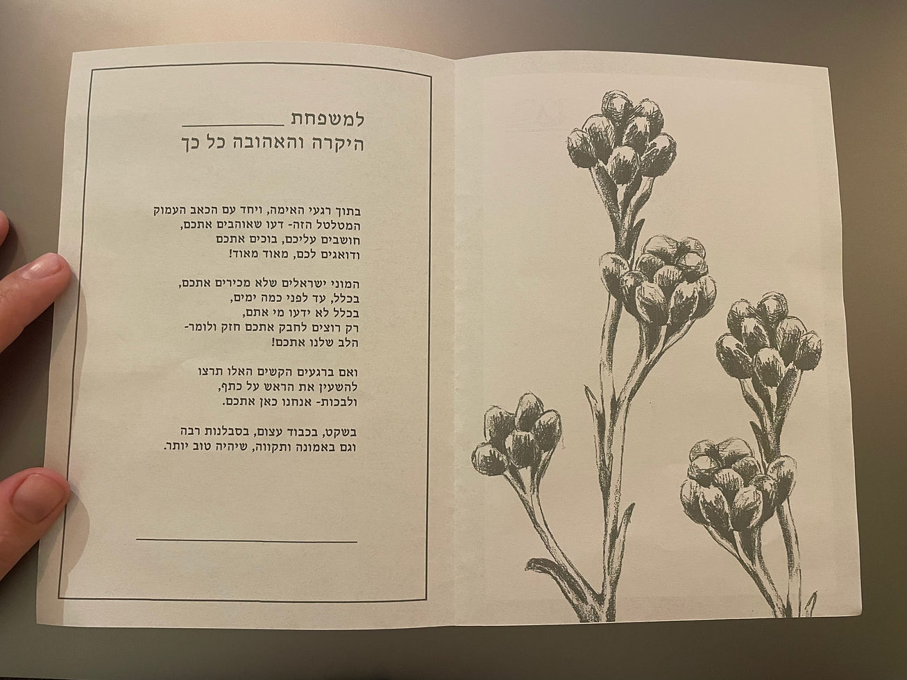 יחד, כפורום מנהיגות מחברות, ניסחנו מכתב מנחה למתנדבים עם 'עשה ואל תעשה', והשארנו מכתב אישי למשפחה השכולה ליום השמיני, היום שבו העולם מתחיל לחזור לשגרה אבל כאבם רק מתחיל.